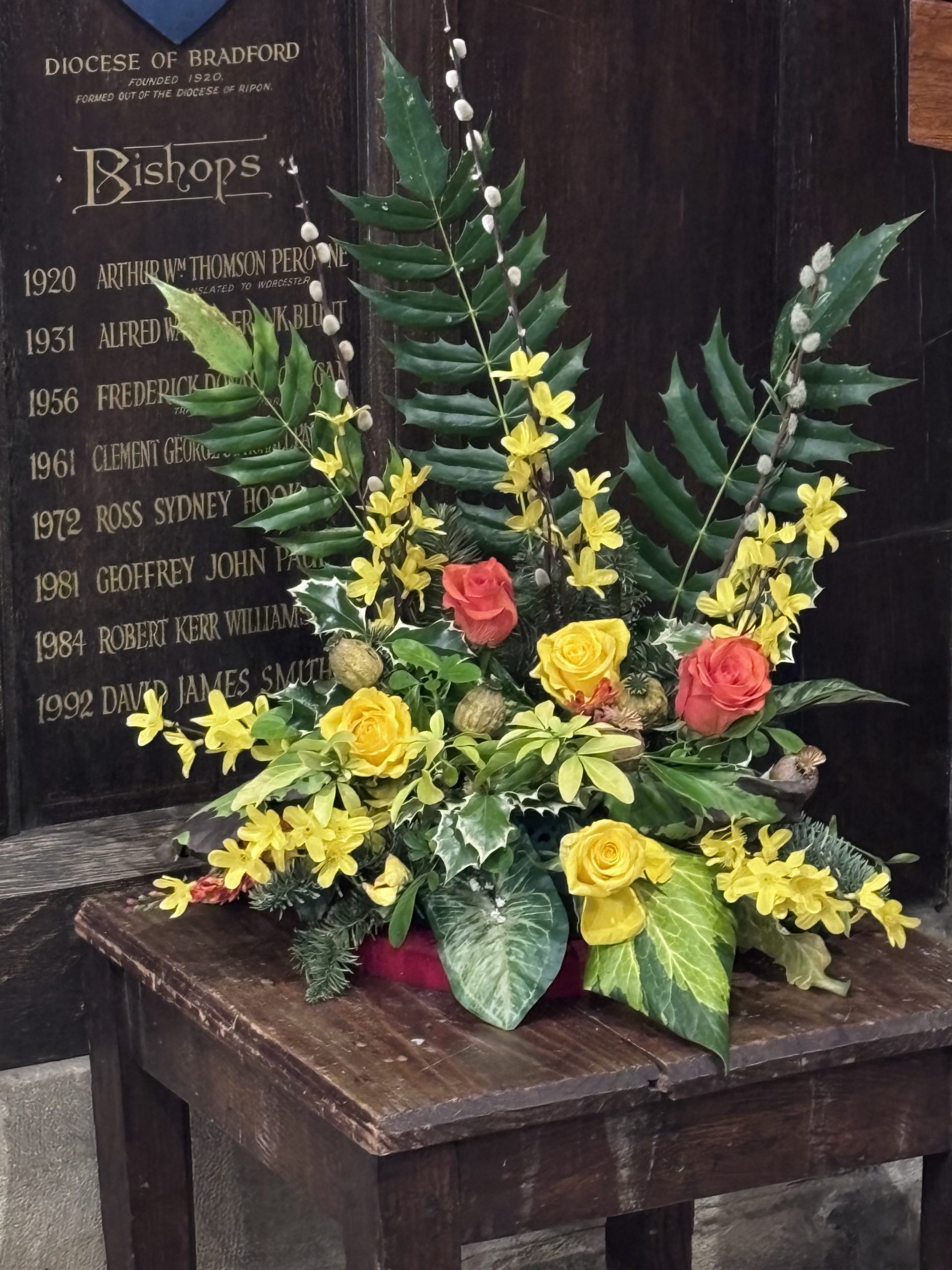Our team of flower arrangers, led by Norma Scatchard, meet in the church every Thursday at 10.30 am . The cost of flowers is partially covered by donations.