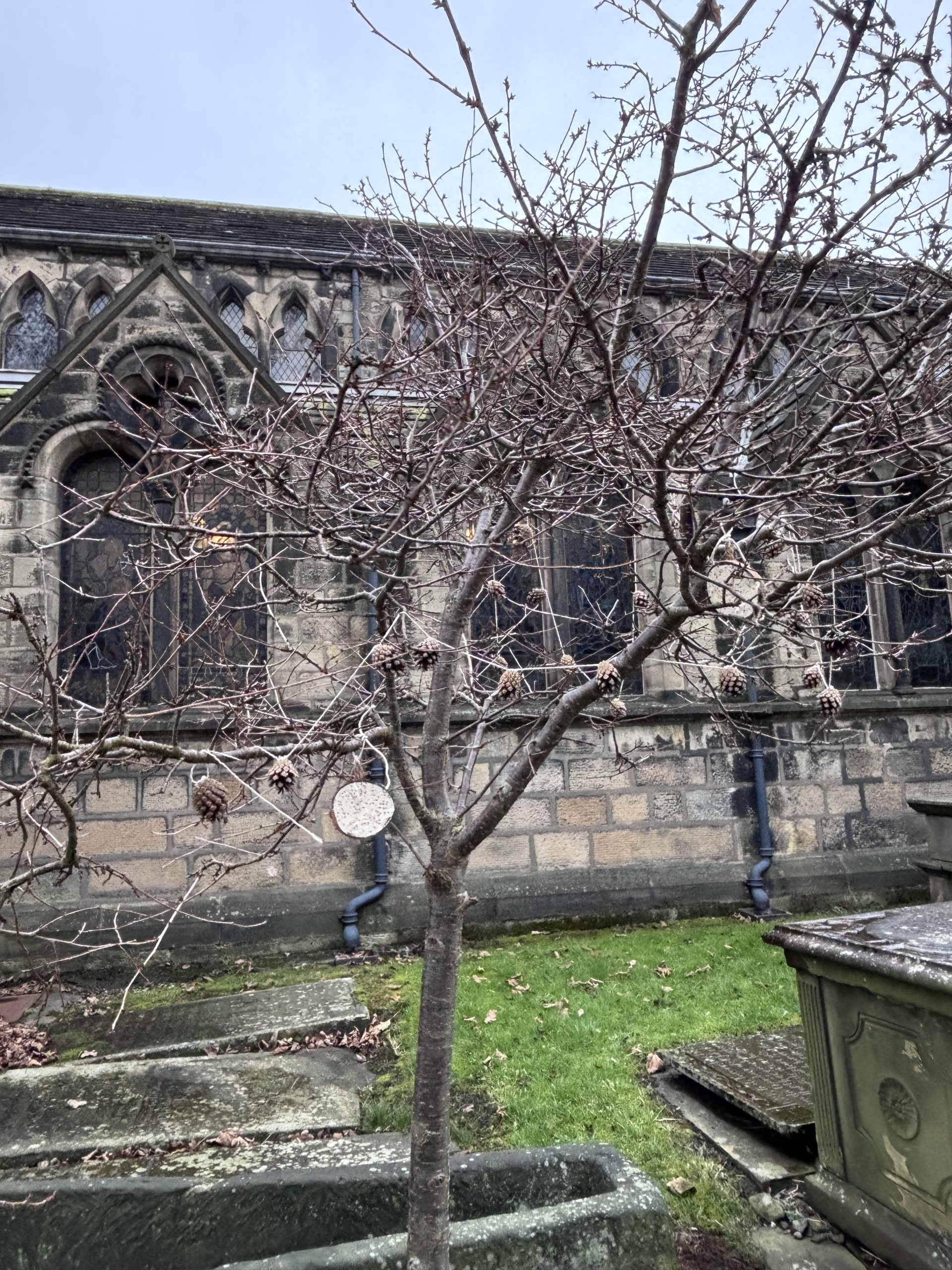 Please notice too on the outside of the church, two trees have been decorated as ‘Living Trees’ with seeds and nuts to feed the local bird population.