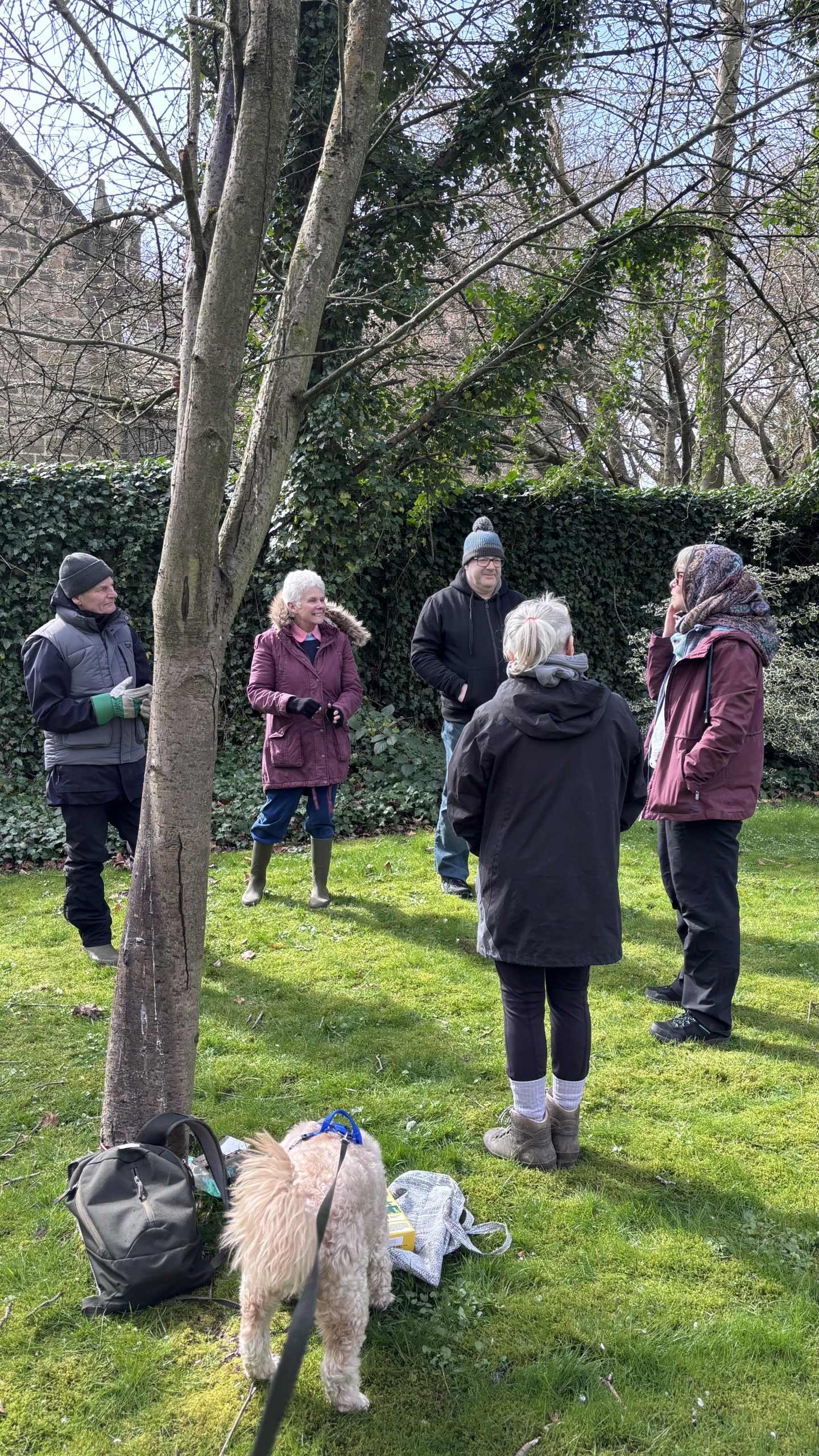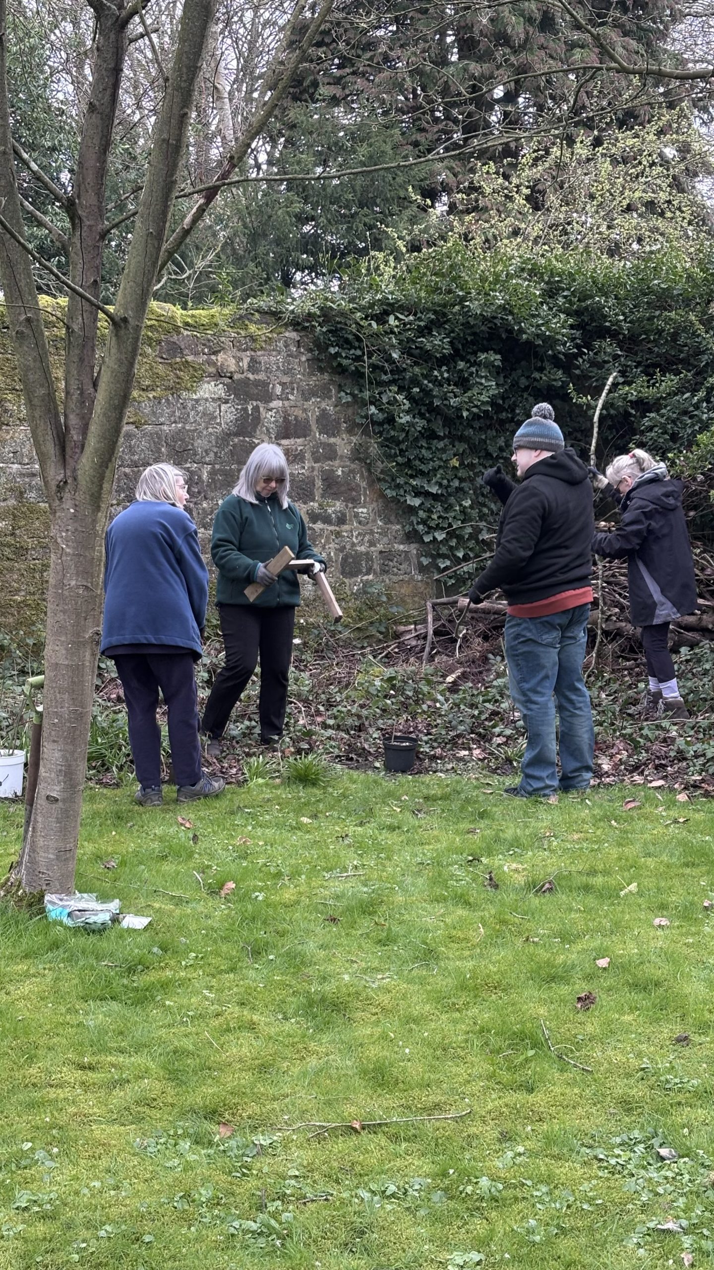 work carried out this morning was plentiful despite the cold, wreaths were taken out of the compost heaps and dismantled, logs collected, plants planted, ivy chopped back (a little) Nettles added to the patch at the bottom of the Churchyard and a general Litter check.
