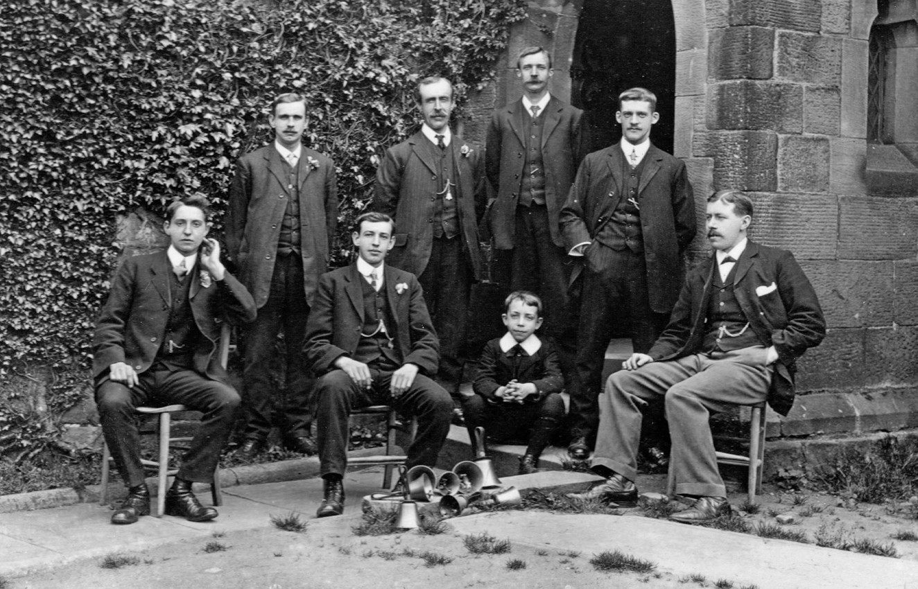 GUISELEY RINGERS OUTSIDE ST. OSWALD’S CHURCH, 1911